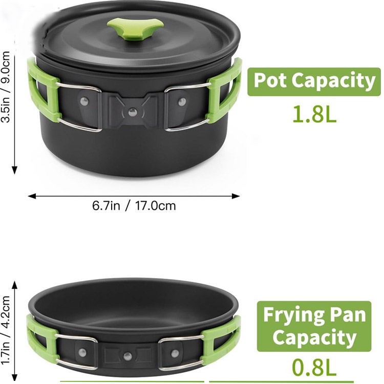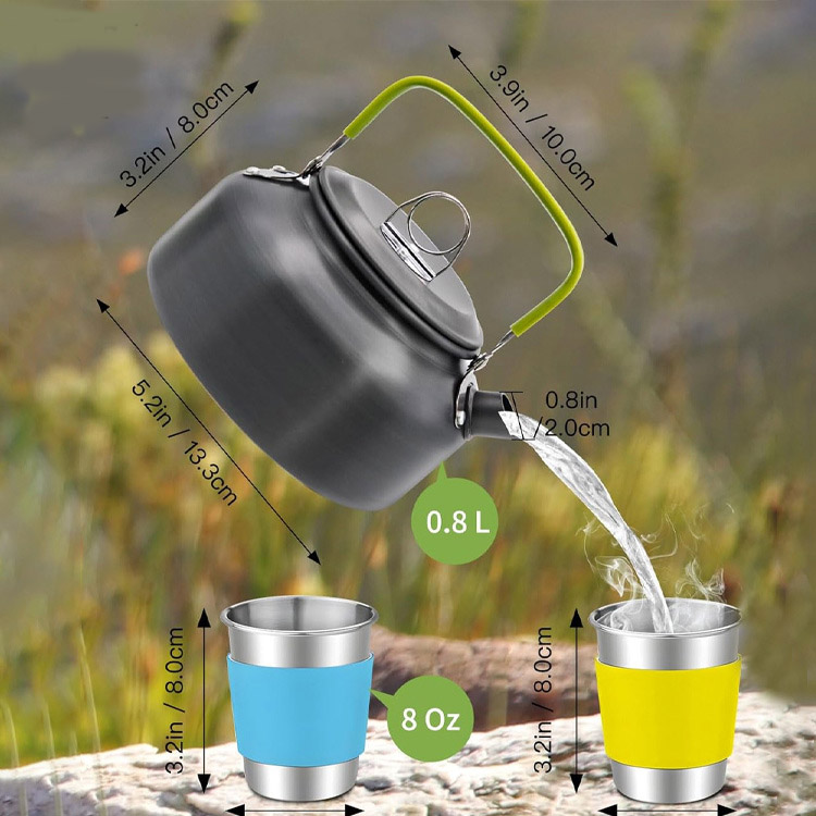 16 tk matkakööginõud, matkakeetmiskomplekt Camping Pot.Teie täielik väliköögilahendus. See 16-osaline matkaköögitarvete komplekt sisaldab potte, panne, tasse, taldrikuid ja riistu. See on mõeldud põhjalikuks matkatoitlustamiseks ning pakub kõike, mida vajate kõrbes toiduvalmistamiseks ja einestamiseks.