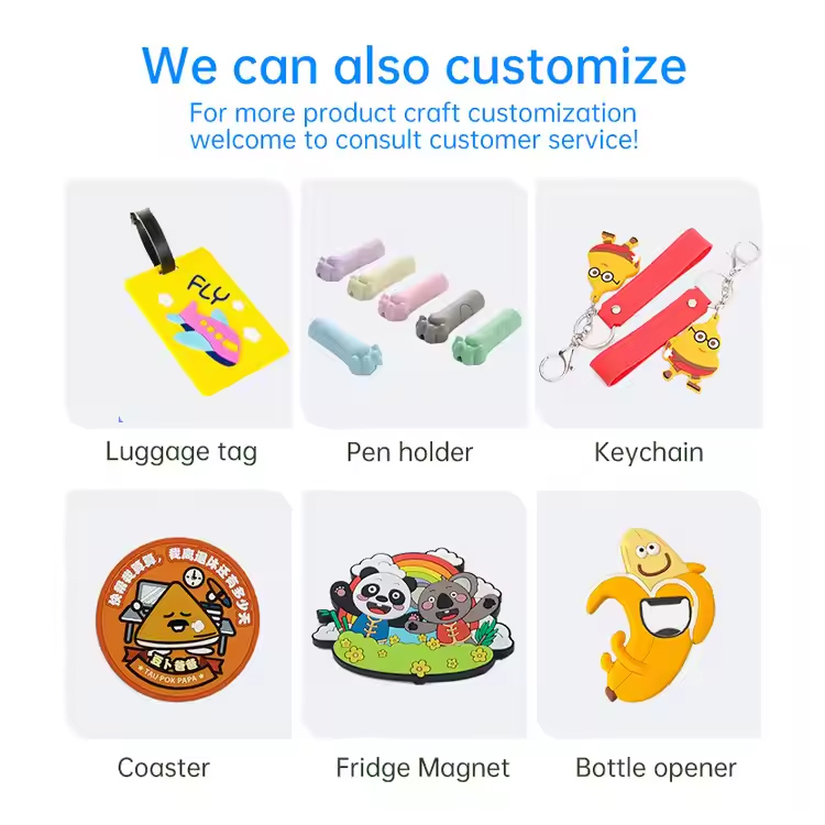 Muutke oma bränd või idee ellu täielikult kohandatud 2D- või 3D-kujundusega. Olgu see logo, maskott või loosung, meie pehmed PVC-võtmehoidjad on kohandatud teie nägemusele erksate värvide ja suure detailiga.