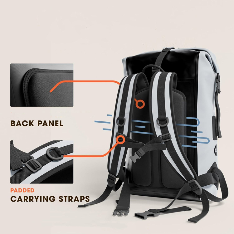 Sisaldab mugavat polsterdatud õlarihma, mitut kandesanga ja väliseid surverihmasid, mis võimaldavad aktiivse liikumise ajal kindlalt seljakotti või veesõiduki külge kinnitada.