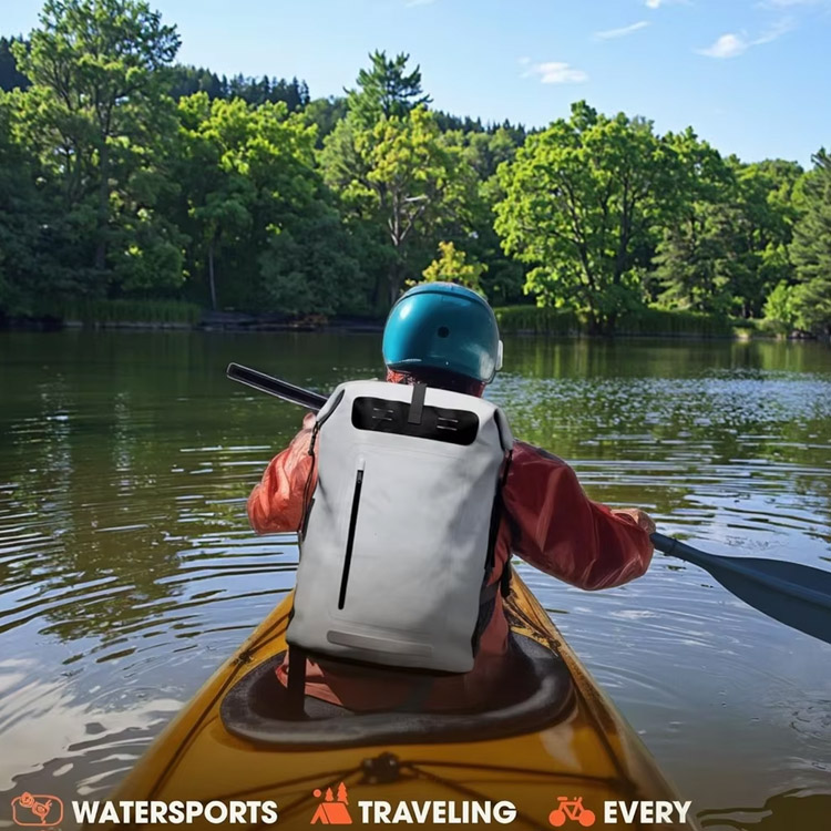 Kohandatud välistingimustes kasutamiseks mõeldud, rull-top suletav kuivkott. Teie uuenduslik veekindel lahendus väliseiklusteks. Sellel uue disainiga kuivkotil on hõlpsaks tuvastamiseks läbipaistev rullkork. Mitme suuruse ja kaasaskantava kandekonstruktsiooniga sobib see suurepäraselt matkamiseks ja erinevatesse märgadesse keskkondadesse.