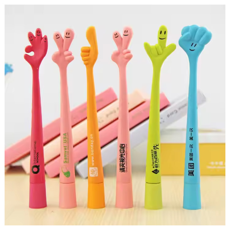 Armas ja armas kohandatud logoga trükitud 1,0 mm plastikust pastapliiats。Lõbus ja värviline sõrmekujuline pastapliiats kohandatud logotrükiga. Loominguline 1,0 mm kirjutustööriist, mis sobib suurepäraselt lastele, reklaamidele, pidudele või koolikingitustele. Vastupidav plastikust korpus, sujuv tindivool ja armas disain, mis kõigile meeldib.