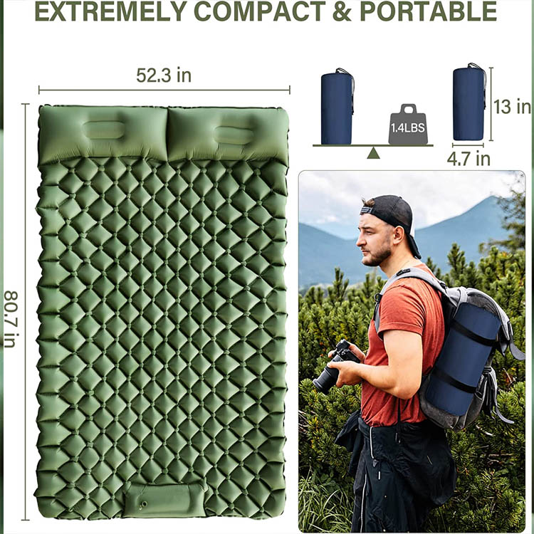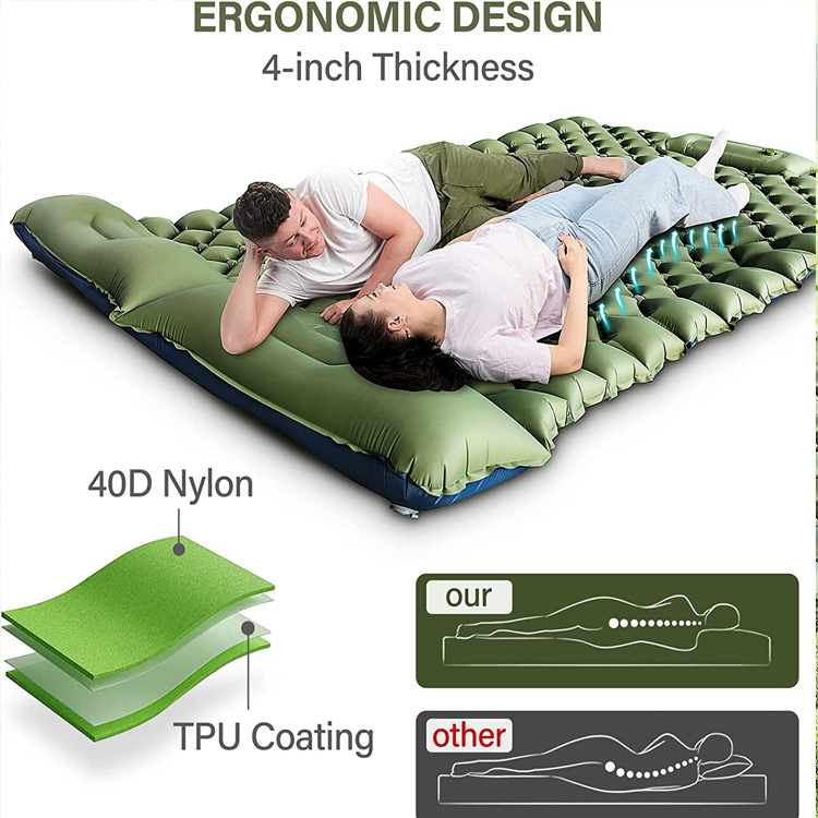 Professionaalse tootmise müüjana soovime teile pakkuda BEST-HOME.Double-Person Camping Sleeping Pad Täispuhutavat kämpingupadja.Toodet on pikka aega eksporditud Euroopasse, Põhja-Ameerikasse ja Kesk-Ida piirkondadesse. Tehasena saame tagada täpse tarneaja ja parima müügijärgse teeninduse ning meie tootekvaliteeti tunnustavad kliendid kogu maailmas.