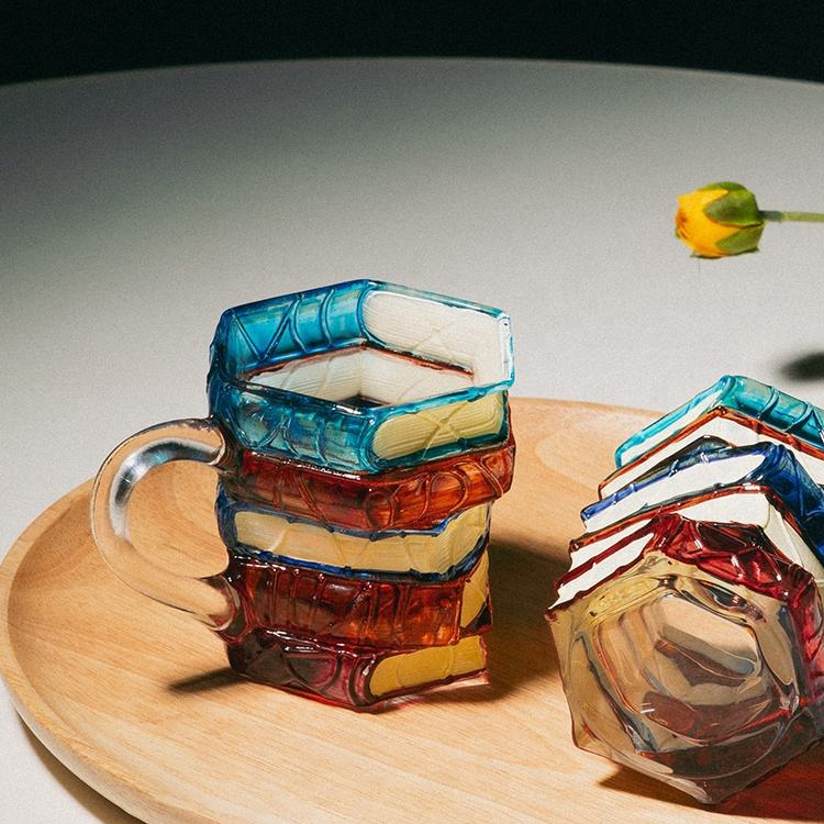 Käsitsi maalitud klaasist kohvitass 3D maalitud raamatu kohvikruus