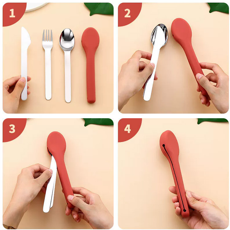 Sisaldab olulisi sööginõusid: söögikahvel, lauanuga, supilusikas, teelusikas ja korduvkasutatavad söögipulgad – kõik, mis on vajalik täisväärtuslikuks söögiks õues või reisimisel.