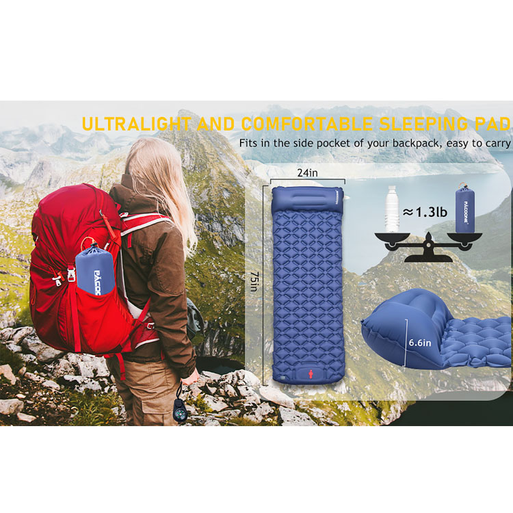 Sisseehitatud reguleeritav õhkpadi toetab korralikult kaela ja välistab vajaduse eraldi padjavarustuse järele, suurendades magamise mugavust, säilitades samas pakendi minimaalse kaalu.