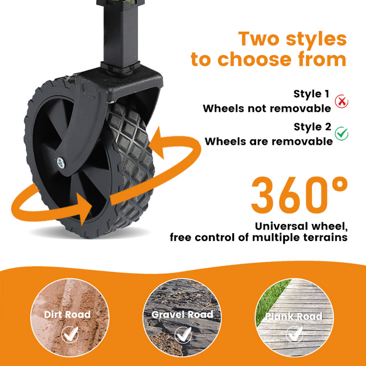 Tugevdatud raudraami ja roostevastase kattega ehitatud tarbekäru säilitab erakordse vastupidavuse, kandes samal ajal kuni 150 kg raskusi, pakkudes usaldusväärset jõudlust erinevatel maastikel.