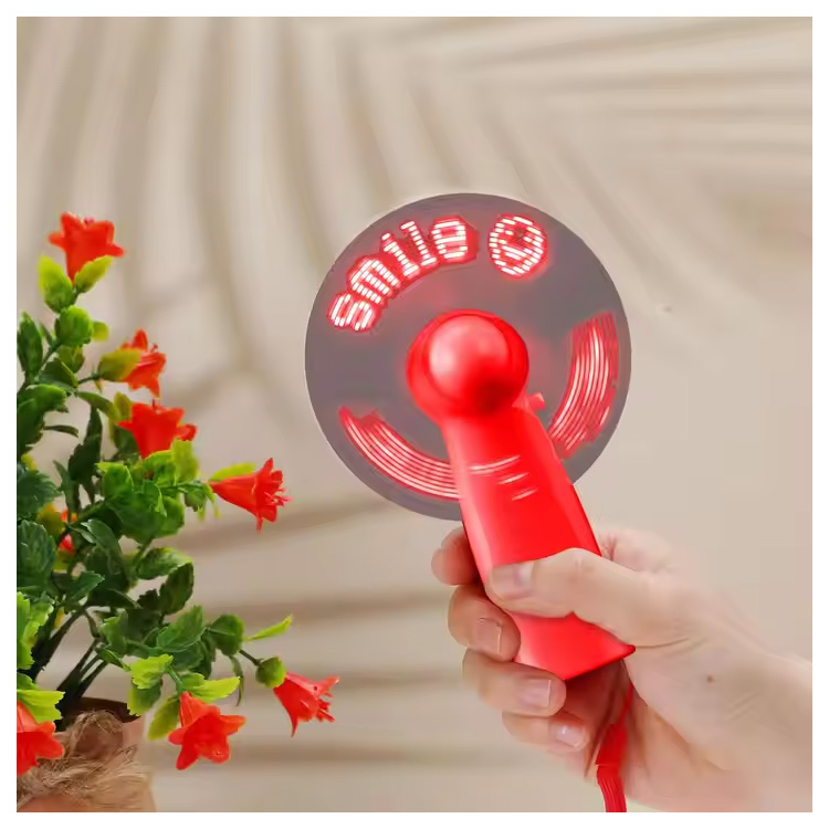 Uus mini kaasaskantav mugav LED kohandatud sõnumiga aku ventilaator.Mini kaasaskantav LED-teateventilaator— Kompaktne, akutoitega ja keritava tekstiga kohandatav. See pakub lahedat tuult, kuvades samal ajal oma brändi või sõnumit eredate LED-tuledega. Ideaalne ürituste, pidude või reklaamkingituste jaoks.
