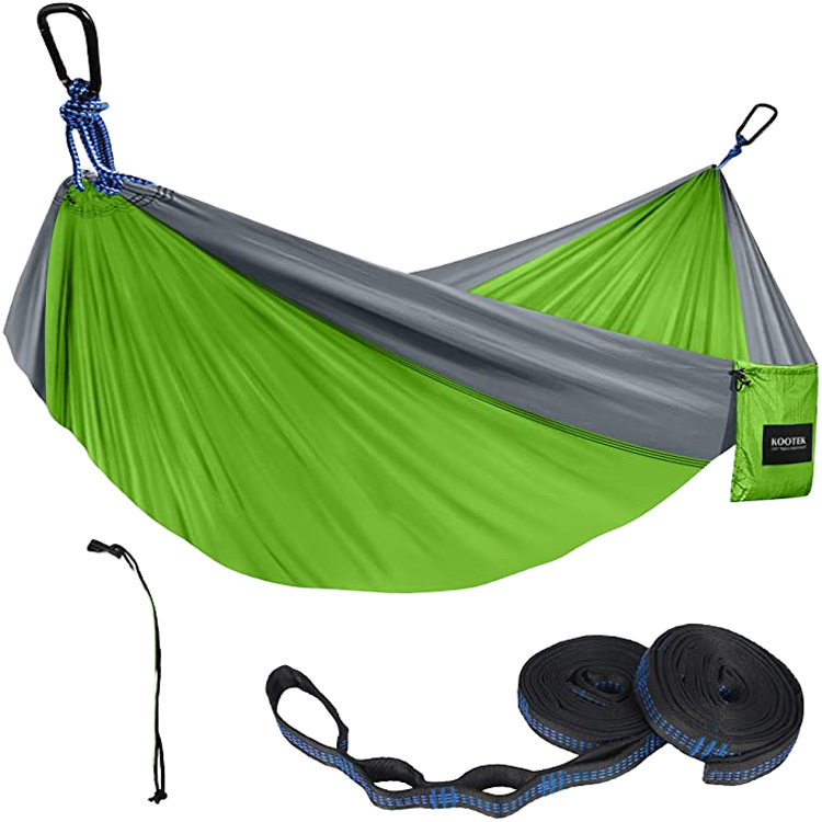 Intuitiivne rihmasüsteem ei vaja sõlmi ega tehnilisi teadmisi – lihtsalt mässige rihmad ümber puude, kinnitage karabiinid ja teie isiklik puhkus on koheseks nautimiseks valmis.