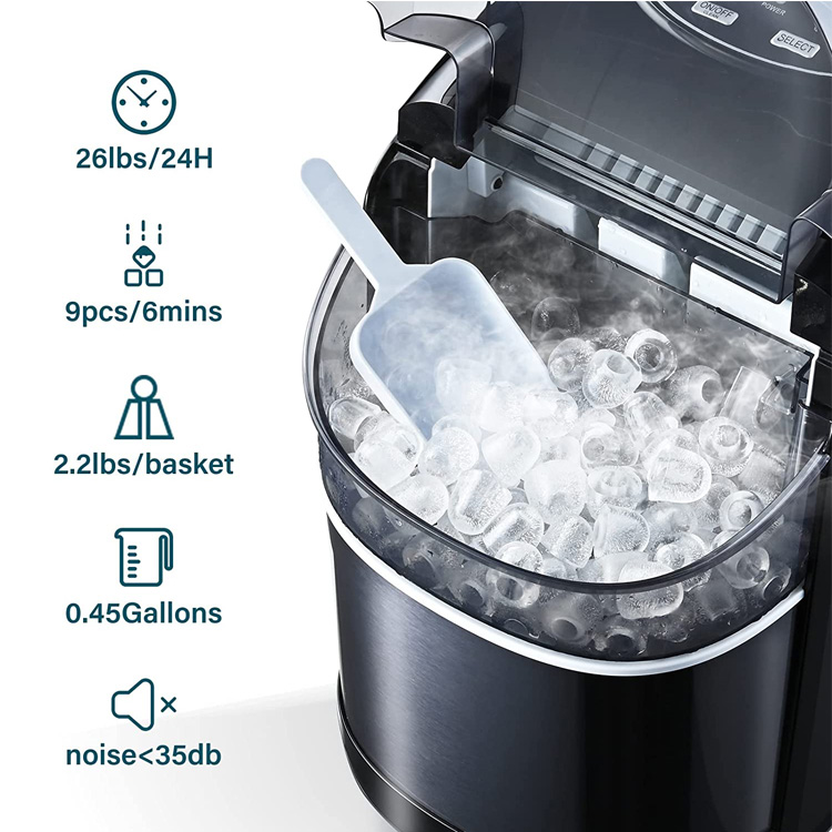 Jäämasin töölauale, isepuhastuv, 26 naela/24 h kaasaskantav jäämasin, 9 jäävalmistamist 6 minutiga, kompaktne jäämasin koos jääkulbi ja korviga koduseks kasutamiseks/peole/telkimiseks (must)
