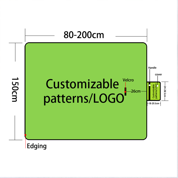Matkamise tarvikud Piknikutekk Kohandatud piknikumatt.Teie esmaklassiline reisikaaslane mugavuse tagamiseks õues. Sellel kohandataval piknikumatil on suur, paks disain ja suurepärane veekindel kaitse. Asjatundlikult telkimiseks ja piknikuks pidamiseks loodud see on kompaktseks kokkupandav, et kaasaskantav oleks kõikidel teie seiklustel lihtne.